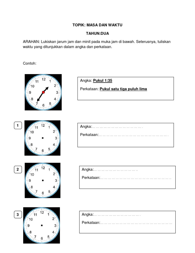 Lukis jarum minit pada muka jam itu untuk menunjukkan. Modul kssr matematik tahun 6 by safiah sulaiman 20060 views. Masa dan waktu tahun 2 drag and drop question. Masa dan waktu tahun 2 ppk 331e. 28 set latihan karangan isi tempat kosong sesuai untuk murid tahap 2 tahun 4 5 6 mycikgu net malay language language education.