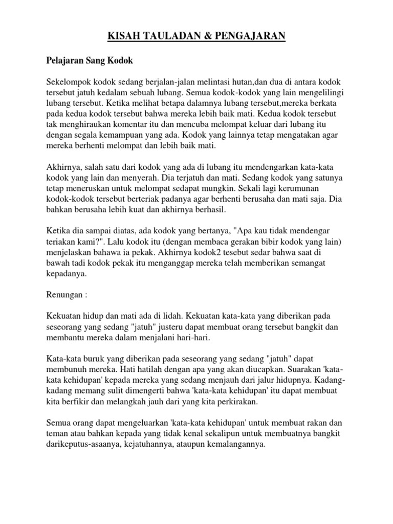Skrip Kisah Dan Teladan from cdn.slidesharecdn.com Ketika kamu berbuat baik, maka hal tersebut serupa secangkir teh hangat yang sedap, saat diaduk aromanya menenangkan dan warnanya tetap sama bahkan setelah lama. Cerita ini memberi pengajaran bahawa hidup kita seperti putaran roda dan tidak selalunya diatas. Cerita ini memberi pengajaran bahawa hidup kita seperti putaran roda dan tidak selalunya diatas. Sikap dengki, cemburu dan irihati seringkali bersarang di hati manusia. Tapi mmg sangat2 memberi pengajaran buat yang masih hidup~. Sedekah itu dapat menutup tujuh puluh ribu kejahatan. Wan mariam bt wan ismail. Spm is trying to killing me man !